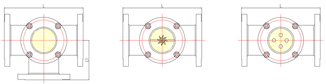 2、三通型,一般用于兩條或以上的管線交叉口,可以通過視窗觀測介質(zhì)的動向。